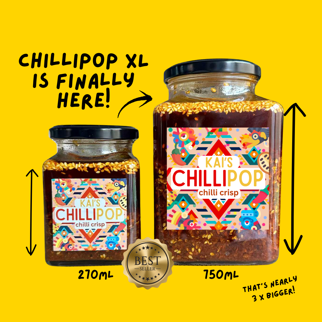 Say hello to the 750ml ChilliPop! Our best-selling chilli crisp, now in a bigger, bolder jar. That’s nearly 3 regular jars in one!